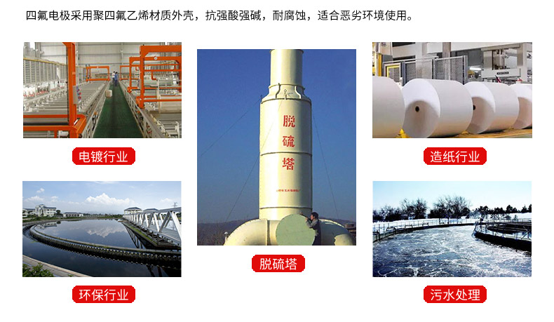 MIK-PH-5013A工业在线聚四氟电极采用聚四氟乙烯材质外壳,抗强酸强碱,耐腐蚀,适合恶劣环境使用。可根据客户需要加装各种温补型号PT100/PT1000/NTC 10K等。广泛应用于医药、颜料、涂料、纸浆造纸、中间体、化肥、淀粉、污水处理、环保、电镀废水处理等行业。