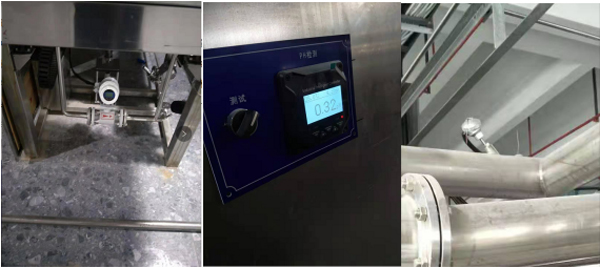 现场电磁流量计用于测量印染污水,目前随着自动化程度的不断深入,流量计在印染行业上的应用越来越广泛;现场pH控制器主要应用于控制加药;现场温度传感器应用于染料配比中的温度检测。