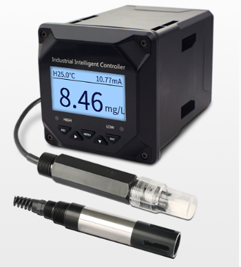 溶氧仪由传感器和显示仪表两个部分组成。溶解氧分析仪传感部分是由金电极(阴极)和银电极(阳极)及氯化钾或氢氧化钾电解